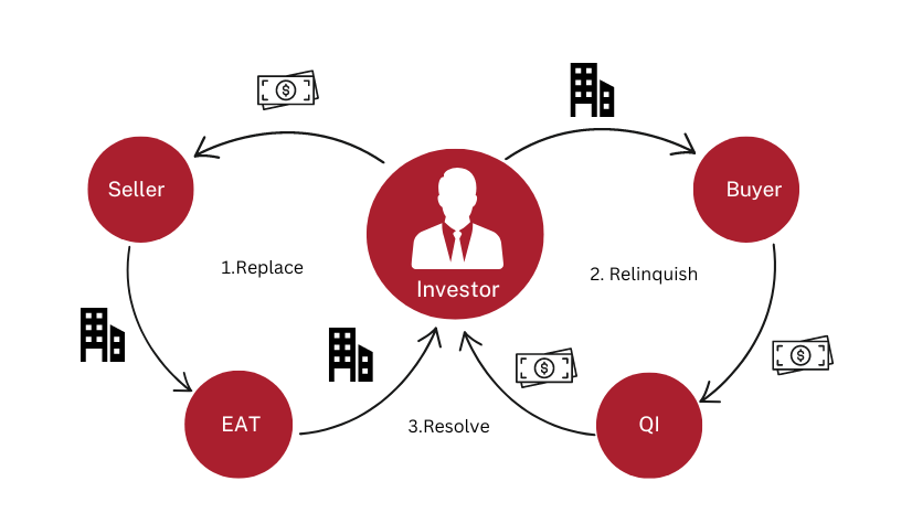 3. Resolve Phase: Once the relinquished property has been sold, the EAT transfers ownership of the replacement property to the investor, and the QI remits the sale proceeds from the relinquished property to the investor, finalizing the 1031 exchange.